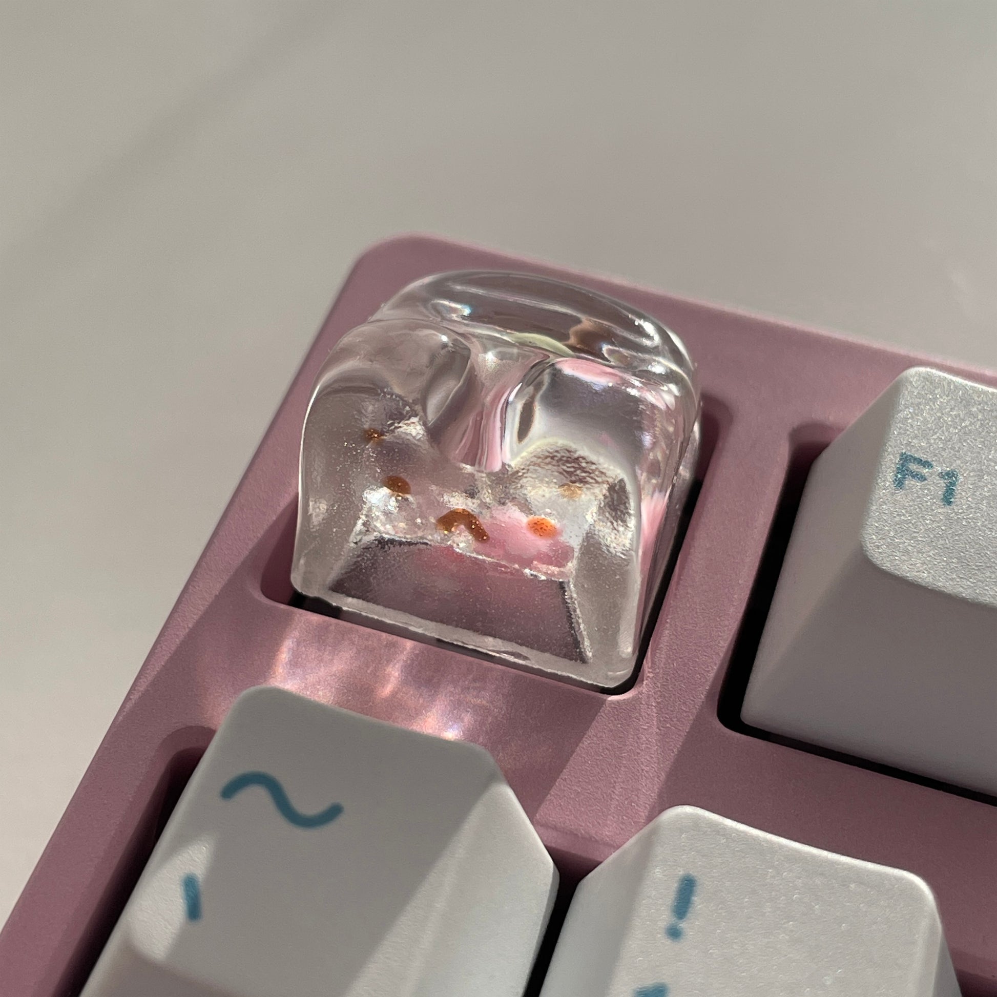 Peek inside to see a mini hanami dango and sakura! This keycap is glazed in resin for a glossy transparent look.